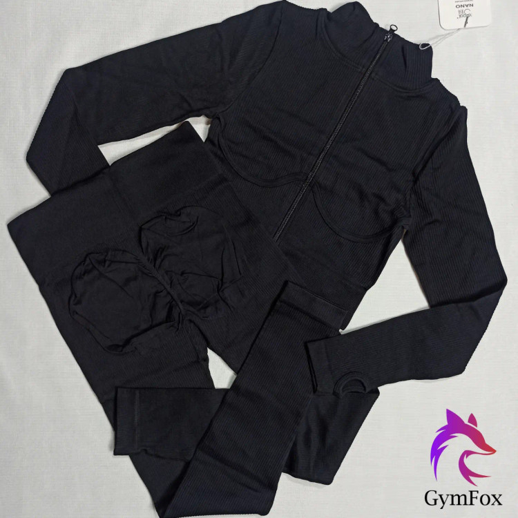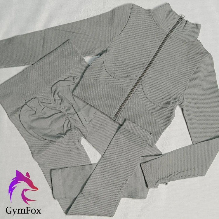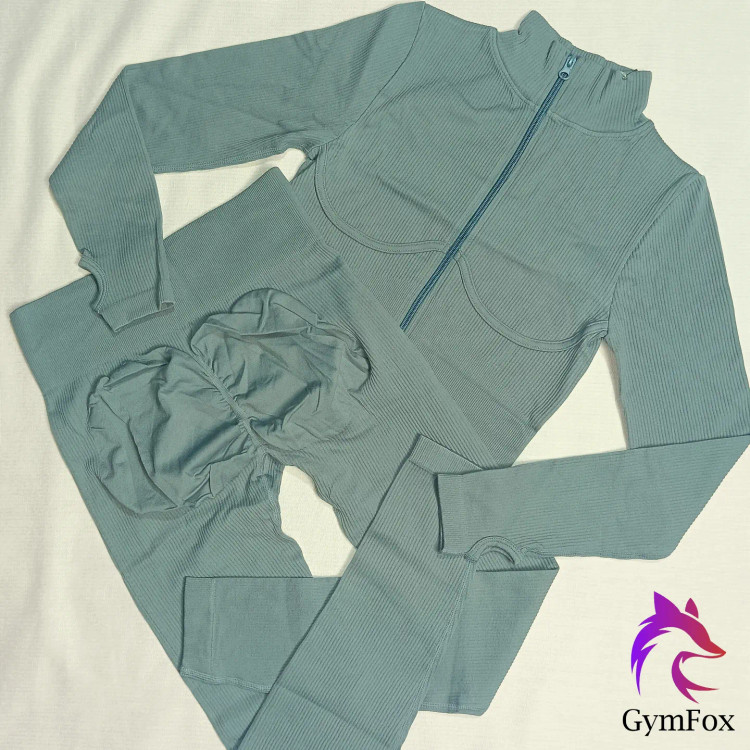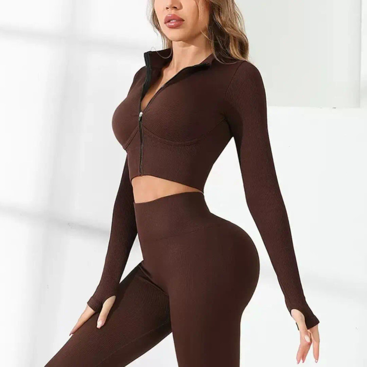 ست سیملس کراپ آستین بلند و لگ سیملس پشت چین دار کبریتی