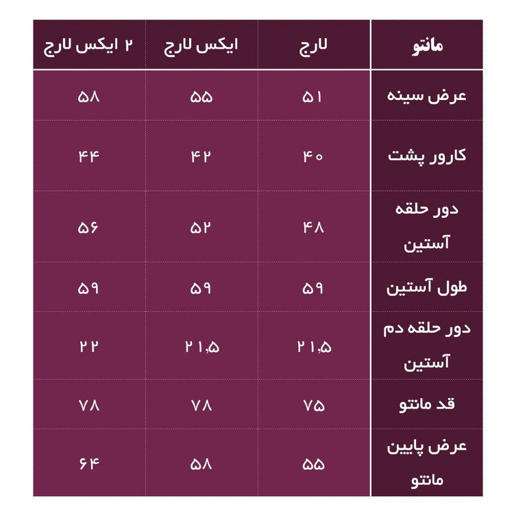 📏سایز بندی : جدول سایزبندی اختصاصی در اسلاید دوم
